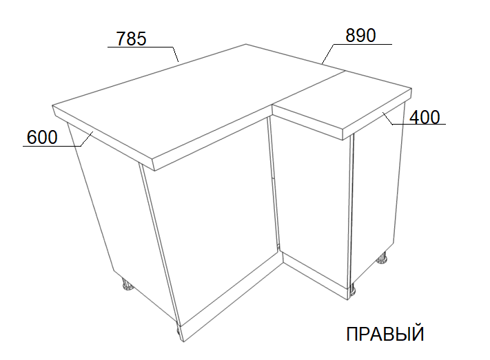 Стол угловой правый 785/890х600/400х810 Н-124 ЛДСП, Боровичи мебель