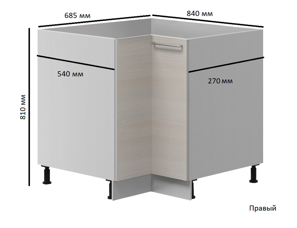 Размеры без учета столешницы: 685/840*540/290*810 мм