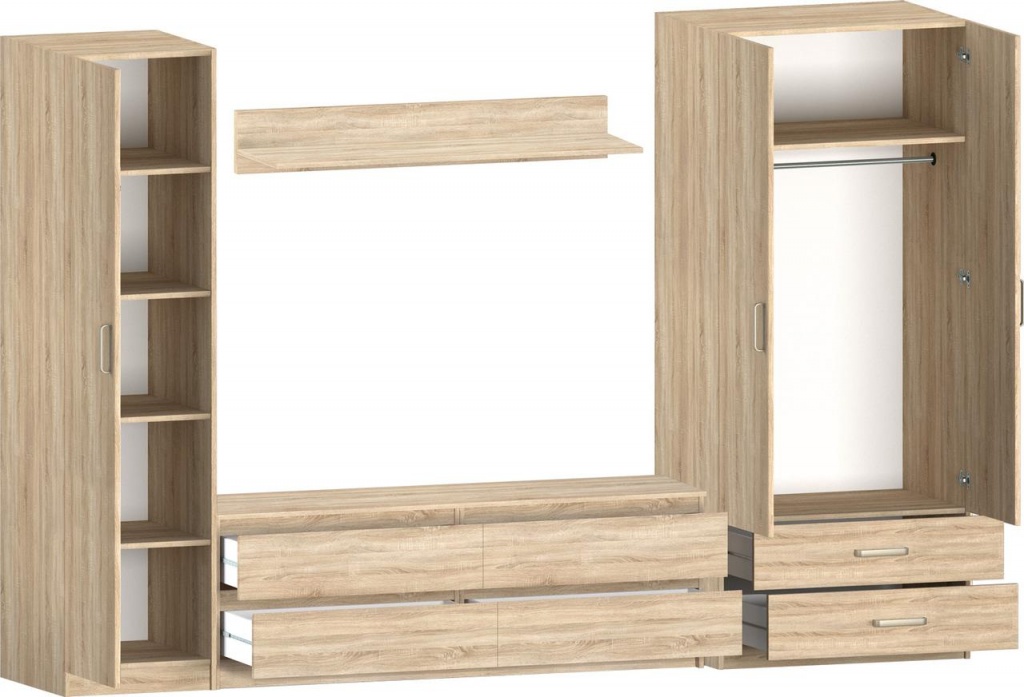 При желании, вы можете дополнить комплект другими элементами этой серии.Используется качественная фурнитура европейского производства, благодаря которой дверцы шкафов, долгие годы открываются четко и без усилий. Ящики на металлических направляющих, что обеспечивает мягкость открытия. Ручки хромированные. Мебель удобна тем, что можно собрать свой комплект из широкого ассортимента предметов. Таким образом, можно подобрать удобную, функциональную стенку необходимой конфигурации, для комнаты любой площади. Мебель сертифицирована.