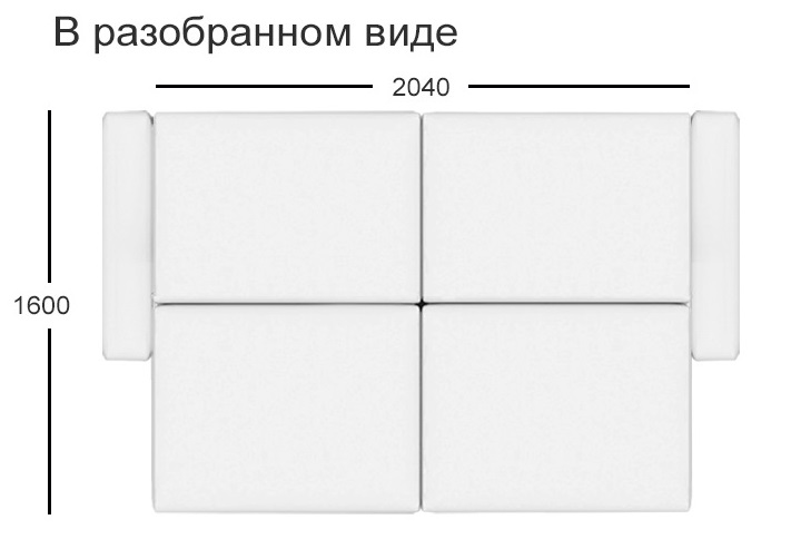 Габариты: 2340х1050х1000 мм. Спальное место: 2000х1600 мм.